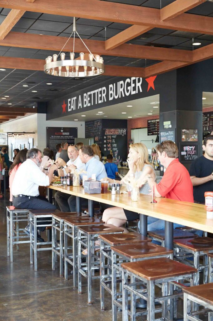 Hill Country Galleria’s top burger spot features Premium Gold Pure Country Angus Beef topped with gourmet goodies. GF buns and lettuce wraps are available. Must-tries: burger of choice with bacon cheesy fries (a meal in itself). allstarburger.com