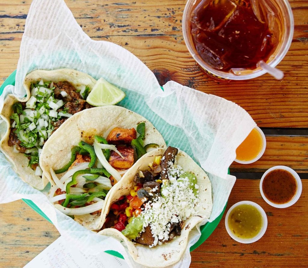 a taco trio at Tacodeli