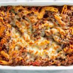 5. Transfer the pasta, broccoli, and reserved cooking water into a 9- by 13-inch baking dish. Mix in the marinara sauce and the cooked meat. Top with the shredded cheese.