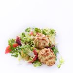 Say hello to amazing GF crab cakes from our genius chef pal Mark Dommen of San Francisco’s One Market Restaurant. With full-on crab flavor and a colorful, bright side salad, they’re decadent and light. You can make uncooked patties hours in advance and refrigerate them until you need them.