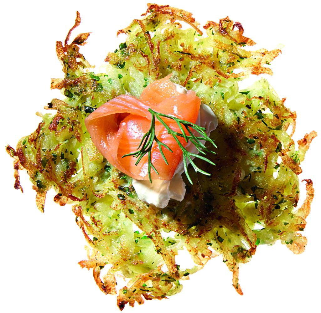 Gluten-Free Herb Latkes with Smoked Salmon and Sour Cream Recipe