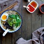 This recipe calls for medium-boiled eggs and blanched baby bok choy (you can blanch it with the noodles for 2 minutes), so plan accordingly. Also, to make the broth in a pressure cooker, add 10 cups of water and the chicken bones, shiitake mushrooms, kombu, apple cider vinegar, carrots, garlic, ginger, and green onions to the insert (do not add the tamari). Cook at high pressure for 45 minutes, then quickly release the pressure. Remove the lid and switch to the sauté function. Add the tamari and boil until the broth has reduced by 1 to 2 inches, about 30 minutes. You should end up with about 2 quarts of broth.