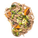 In this satisfying one-dish meal, the savory-sweet flavors of miso and honey mingle with comforting beef broth and ginger while the crisp snap of roasted broccoli and the creamy goodness of roasted sweet potato add texture. Heads up: many soba noodles contain wheat, so check the label before you buy if you want your gluten free soba bowl to actually be gluten free!