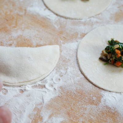 Considered “pot stickers” whether they’re Chinese, Japanese (gyoza), or Korean (mandu), these Asian dumplings are best when the dough is rolled thin, so be gentle and work on a well-floured surface. (Thicker pot sticker wrappers are also good, just chewier.) Don’t worry if your pleats don’t look as elegant as those shown here: loaded with your filling of choice, steamed then crisped in the pan, and served with a classic sauce, these dumplings will still be the answer to your Asian-food prayers.