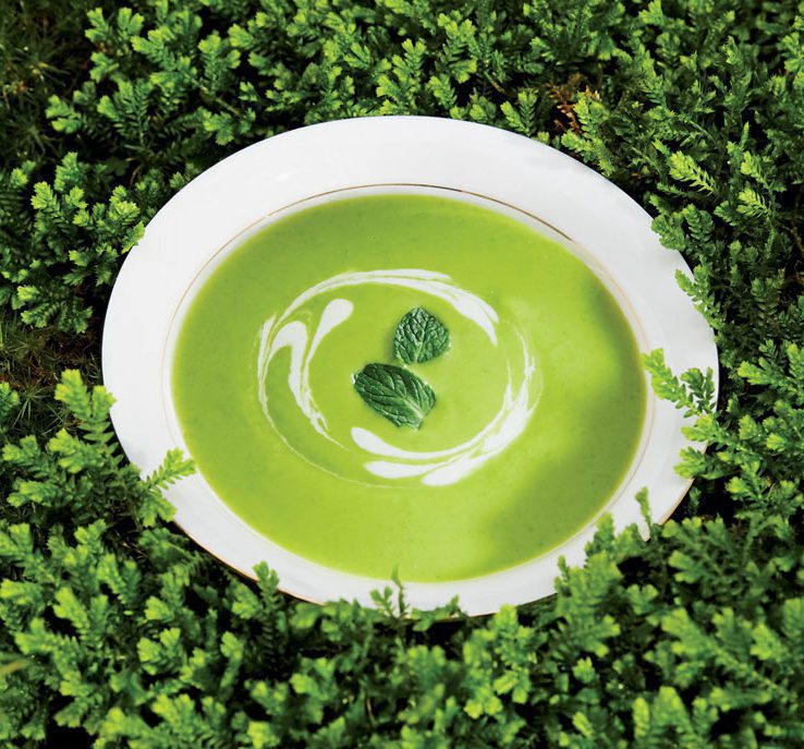 This luscious yet bright embodiment of spring is fun to serve in ice-filled glasses with edible flowers. But this gluten free pea soup is also excellent warm. Photography Renee Anjanette