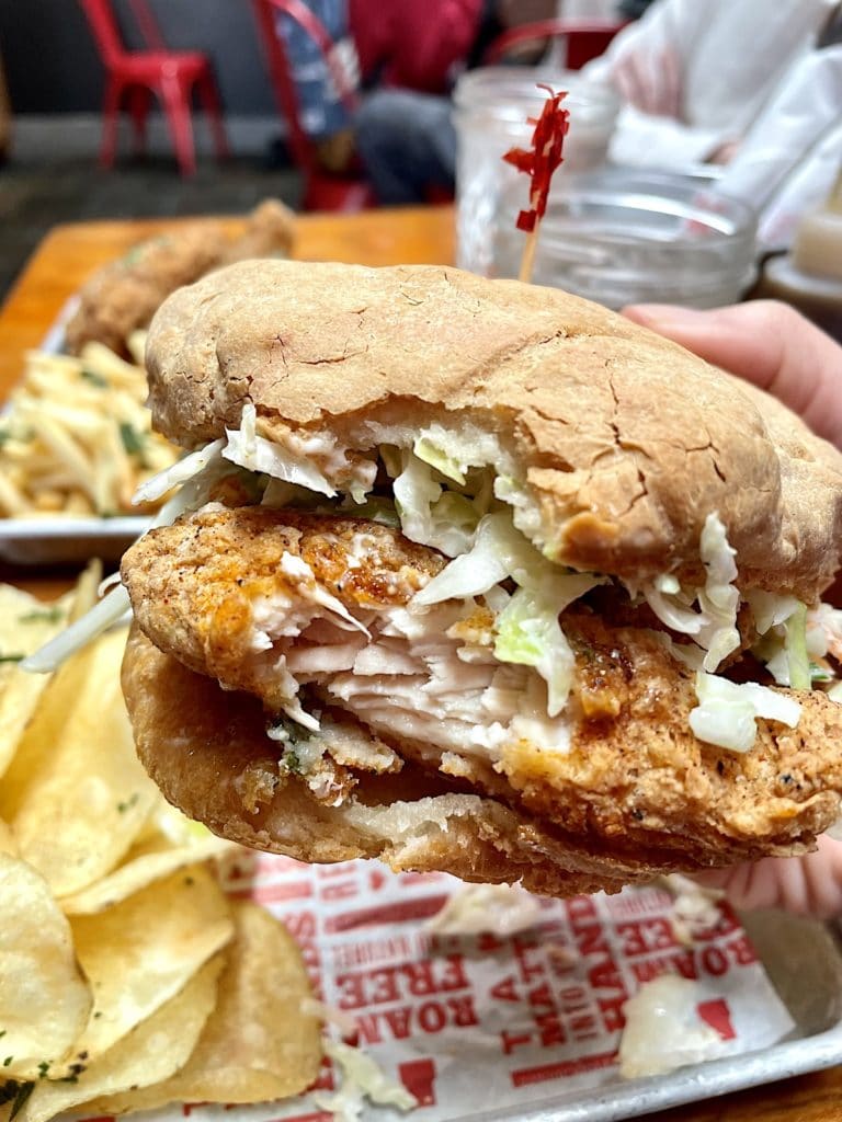 If you come to San Francisco, Oakland, the South Bay, or even San Francisco International Airport, you can pop into any Proposition Chicken to try their GF fried chicken or a GF fried chicken sandwich (the bun is from nearby Mariposa Baking Company). They’ve even got contamination-safe fries.