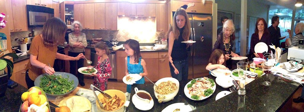 The stuffing contains about 30 ingredients, mostly of which are common spices. (I leave out the candied ginger, because it’s not my thing, and I make my own cornbread stuffing by cooking GF cornbread, cubing it, and toasting it in a low-heat oven until it’s somewhat crouton-like.) It’s so astoundingly good and one-of-a-kind, it inspires everyone at the dinner table to pause for an unplanned moment of silence out of respect and adoration. It also ensures requests for second and thirds.