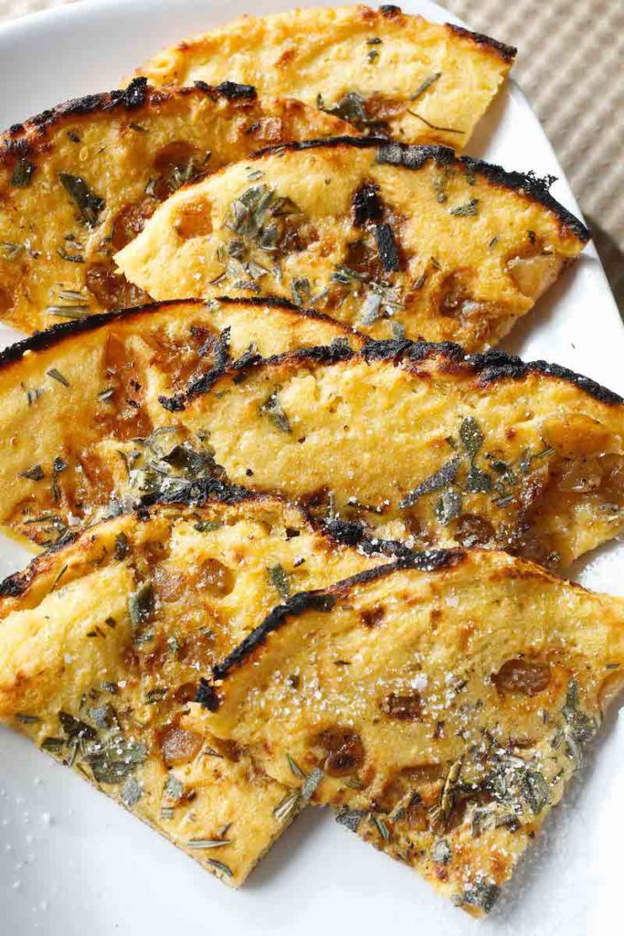 Love on a plate, this gluten free chickpea flour flatbread can be paired with tumblers of rosé and someone sweet for a perfect appetizer or light meal. Get the recipe