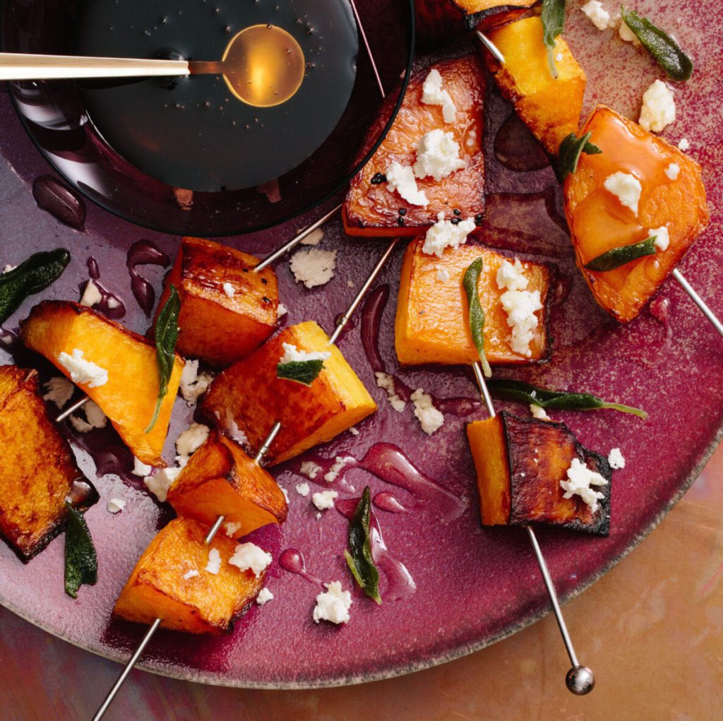 This beauty combines squash and spices with an elegant press-in hazelnut shortbread crust that can be made days in advance. Topped with maple syrup and sour cream-flavored whipped cream and a sprinkle of hazelnuts, it’s a luxe and luscious upgrade to pumpkin pie. Get the recipe