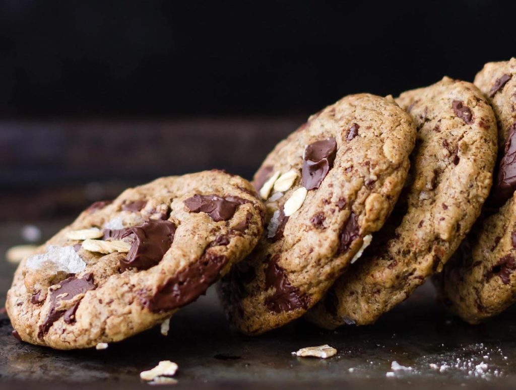 Vegan Salted Tahini Chocolate Chip Oatmeal Cookies